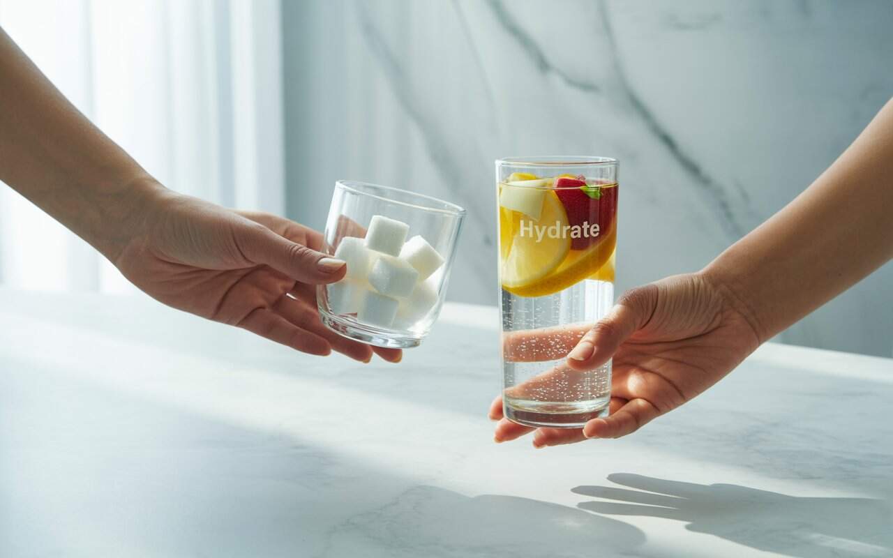 Sugary drinks such as soda, packaged juice, and bottled tea are the biggest sources of sugar. Replacing these drinks with water, infused water, or unsweetened tea is the quickest way to reduce daily sugar intake.