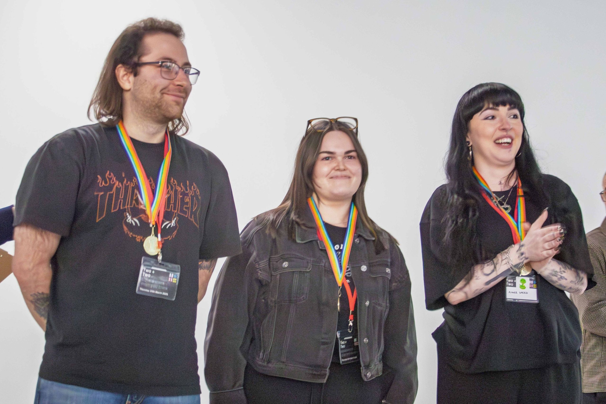 The Green Dragons: Holly Prosser (Leeds Art), Noah Joe (Salford), Gladys Kwok (Liverpool), Kirsten Walker (MMU). Their gift is placement a week on Clear everywhere